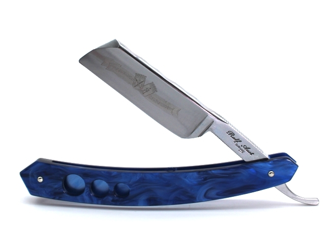 Produktbeschreibung: Ralf Aust Rasiermesser 7/8 Zoll Karbonstahl Kullenrücken Acrylheftschalen blau