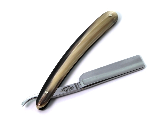 Rasiermesser "Classic 2" von Wacker Solingen, 5/8", 1/1 hohl geschliffen, Heft aus feinstem Büffelhorn. Alle Wacker Rasiermesser werden nach alter Tradition in Handarbeit hergestellt.
