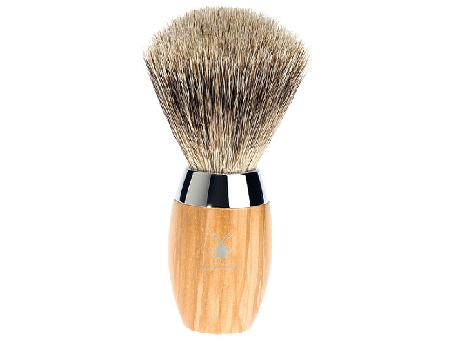 Produktbeschreibung: Mühle Rasierpinsel KOSMO feines Dachshaar Olivenholz