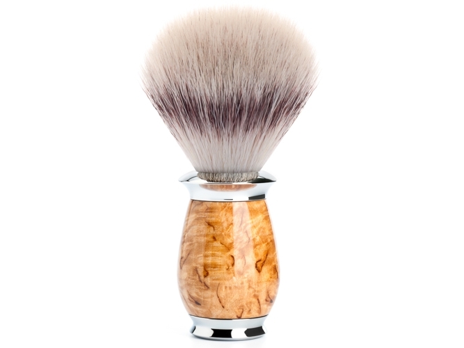 Mühle Rasierpinsel aus der PURIST Design Serie mit Besatz aus hochwertigen synthestischen Fasern Silvertip Fibre®, Griff aus karelischer Maserbirke .