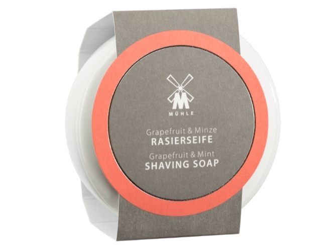Produktbeschreibung: Mühle Rasierseife Grapefruit Mint 65g in Porzellanschale