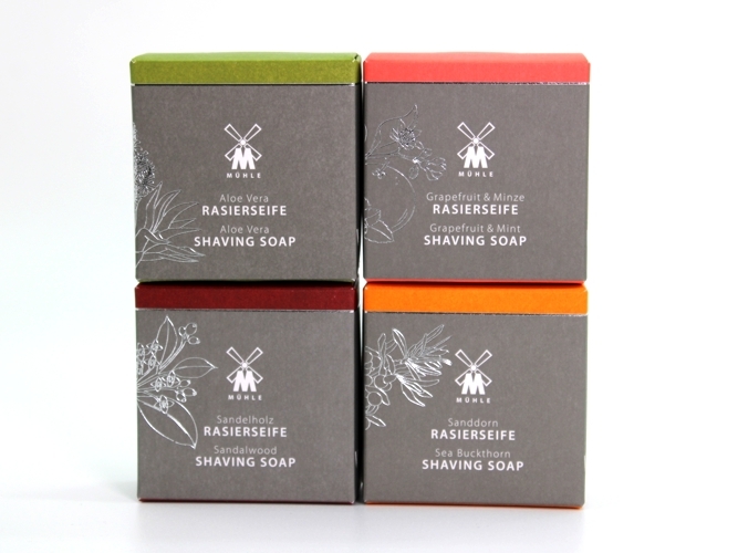 Mühle Rasierseife Set Aloe Vera Sanddorn Sandelholz Grapefruit Mint je 65g