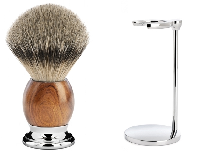 Rasierpinsel Set Angebot Mühle SOPHIST Silberspitzen-Dachshaar Eisenholz